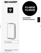 CAUTION • When washing the filter for the first time, the rinse water may be brown. Page 14: Filter Replacement CARE AND MAINTENANCE FILTER REPLACEMENT GUIDELINES The replacement period differs depending on the room environment, the usage hours and location of the Air Purifier. If dust or odour persist, replace the filters. (Refer to “Please read before operating your new Air Purifier”) HEPA Filter / Washable Active Carbon Filter Up to 5 years after opening Guide for filter replacement timing • Filter life can be greatly reduced in a poor environment. The presence of cigarette smoke, pet dander and other concentrations of airborne particles will cause filters to become clogged in less time. REMEDY Fan motor disconnected or abnormal. The “Silent” Fan Speed Indica- tor Light blinks. • Pressing the POWER ON/OFF button will reset the error dis- play, but if error occurs again, contact the Sharp Service Cen- tre. SPECIFICATIONS Model FU-W53E Power supply 220-240V 50/60Hz SILENT Fan Speed Adjustment 3.5W(3.2W) Rated Power Speed Operation 204m /hour /hour 318m /hour Fan Speed ~40m 2 *2 Recommended Room Size High density Plasmacluster ion applicable floor surface ~20m 2 *3 Cord Length 2.0m 338mm(W)x207mm(D)x620mm(H) Dimensions...
